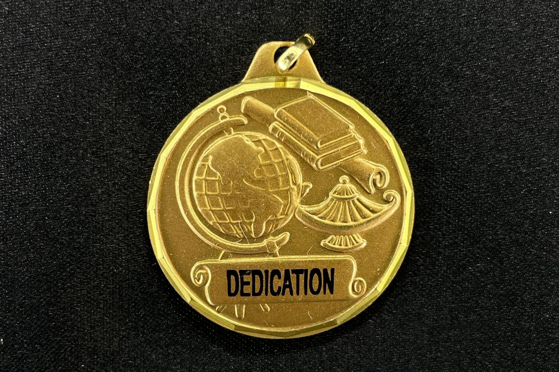 The E Medal Series, 1-1/4" Diameter Die Struck in Brass with Bright Diamond Engraved Borders, Bronze Finish.